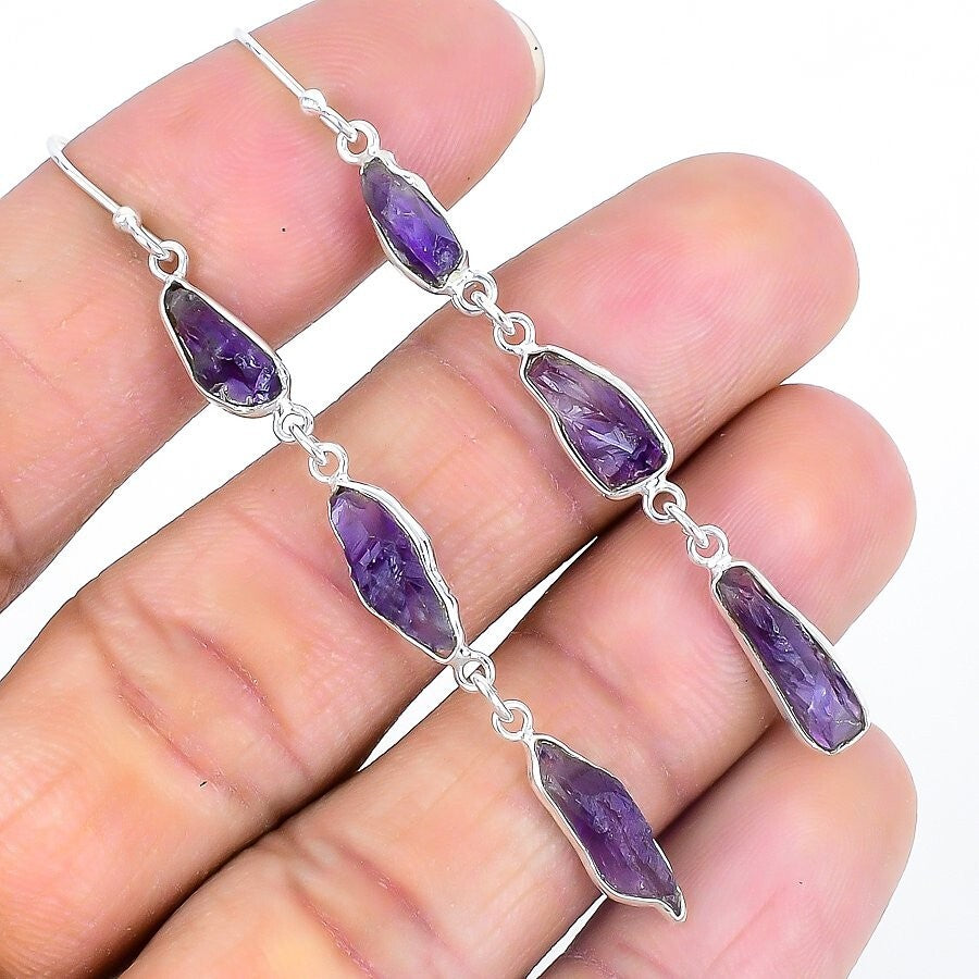 Natural Amethyst Druzy Sterling Silver Sister Dangle Drop Boho Hook New Earrings