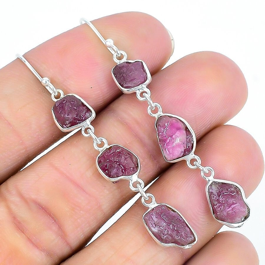 Pink Tourmaline Druzy Gemstone Sterling Silver Mother Dangling Earrings Jewelry