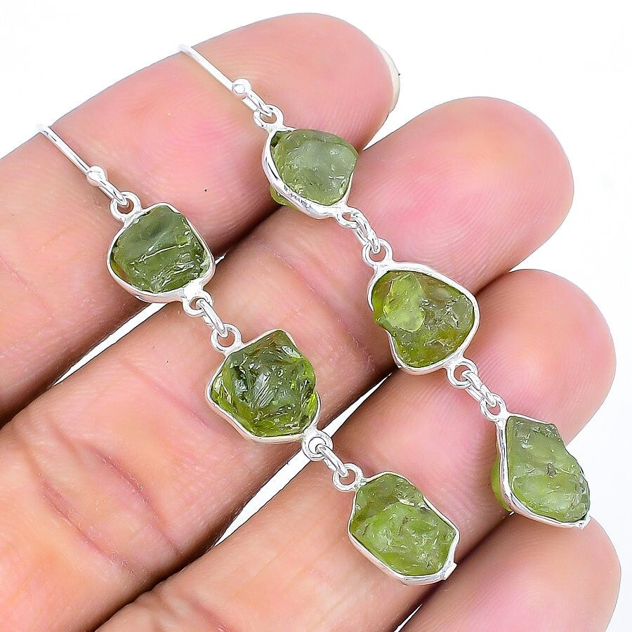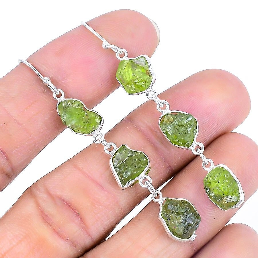 Peridot Druzy Gemstone 925 Sterling Silver New Dangle Drop Wife Earrings Jewelry