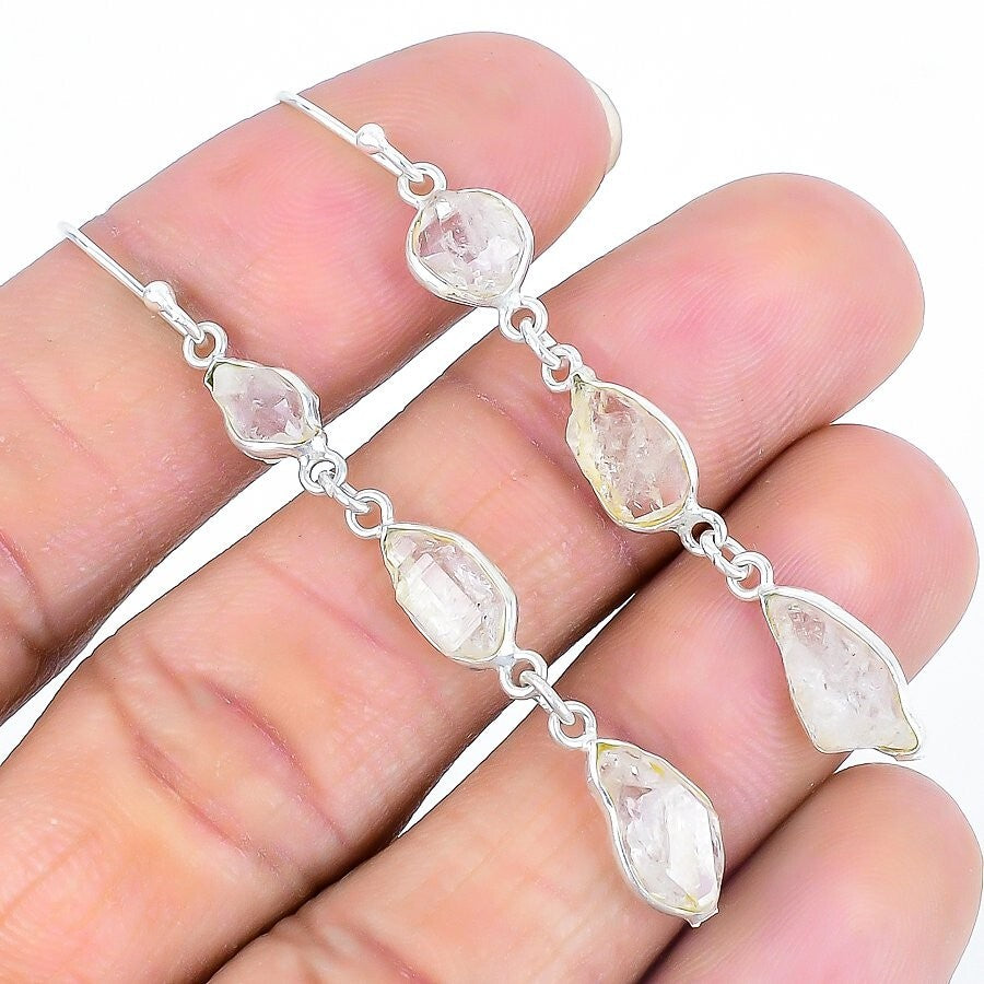Herkimer Diamond Gemstone Sterling Silver Anniversary Boho Dangle Drop Earrings