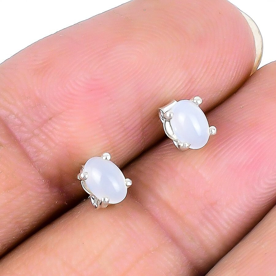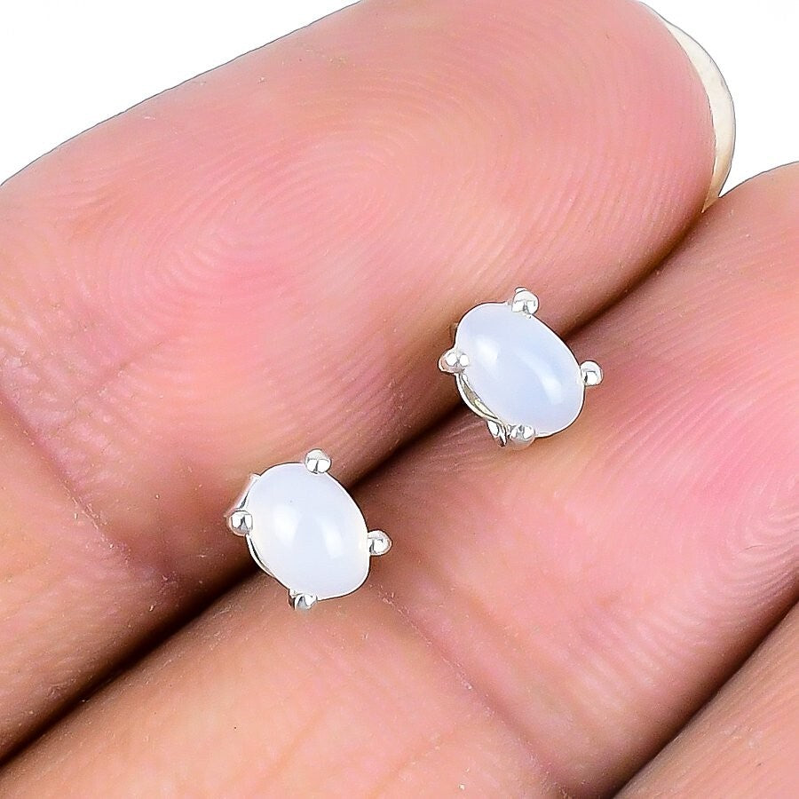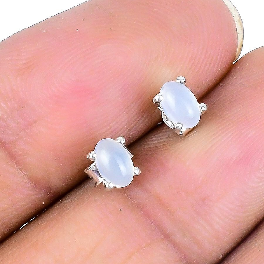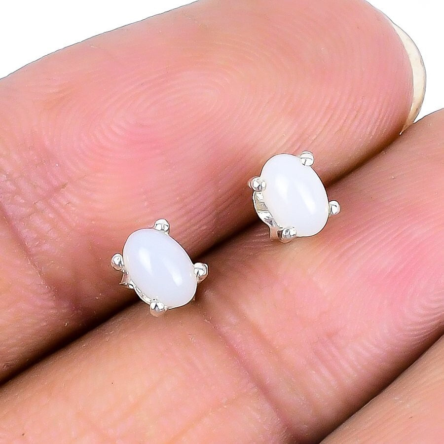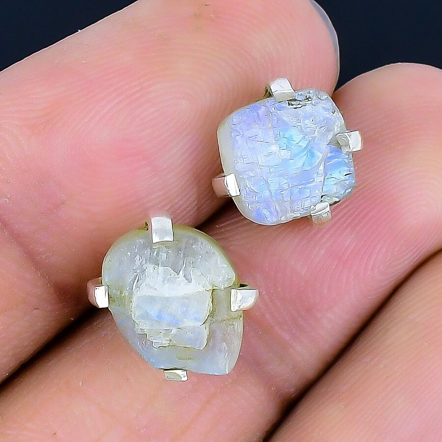 Rainbow Moonstone Stone Solid Silver Stud Post Handcrafted Boho Earrings Jewelry