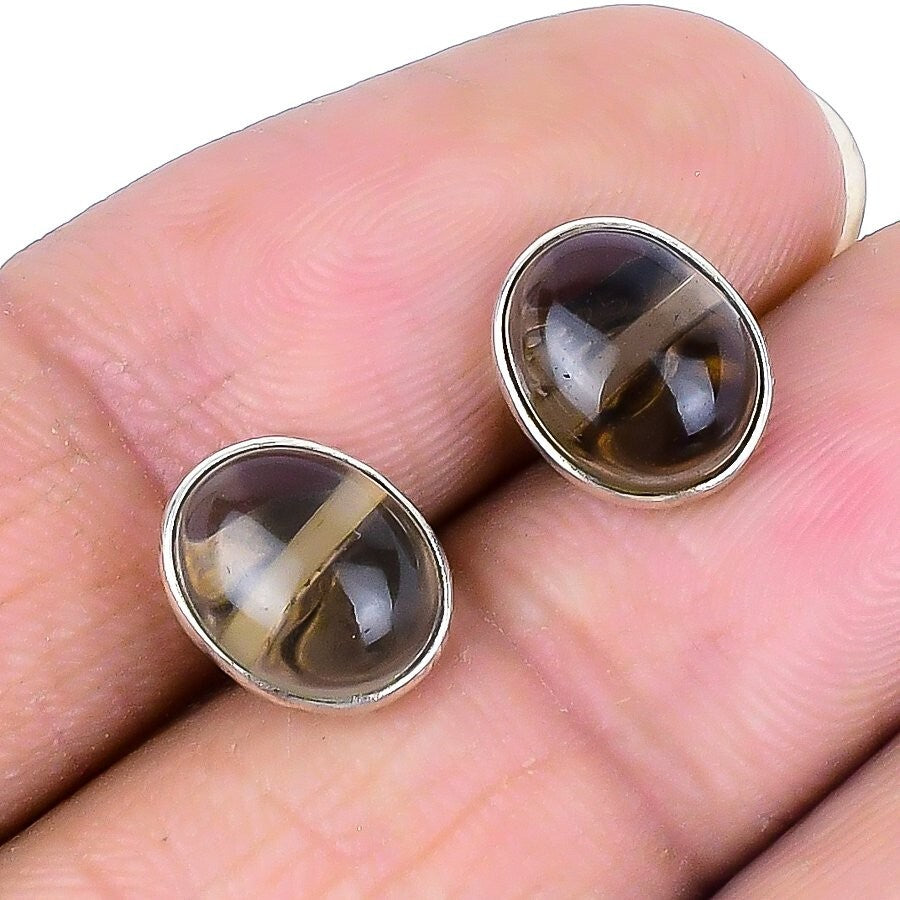 Smoky Topaz Stone 925Ā SolidĀ Silver Elegant Engagement Stud Post Earrings Jewelry