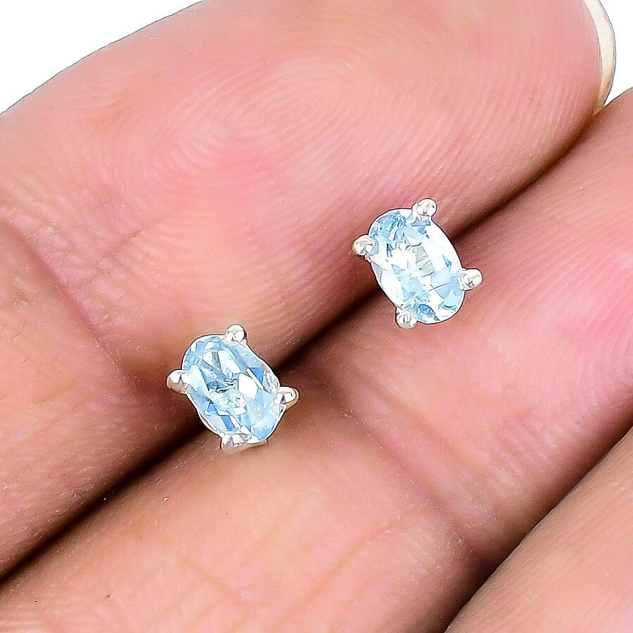 Natural Aqua Topaz 925 Sterling Silver Boho Stud Elegant Sister Earrings Jewelry