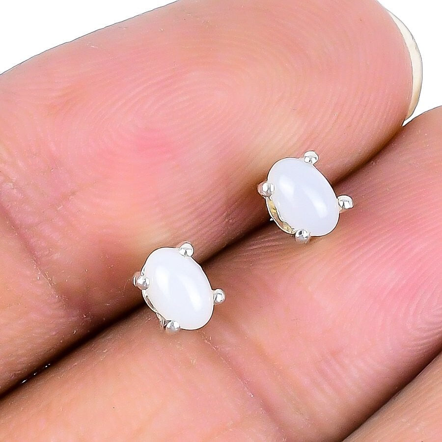 Natural Pink Opal Stud Handmade Handcrafted Mother New Earrings 925Ā SolidĀ Silver