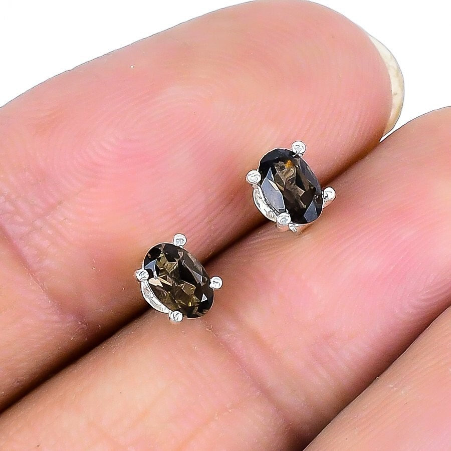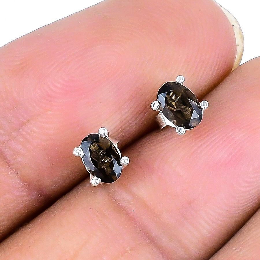 Natural Smoky Topaz Faceted 925 Silver Daughter Stud Post Engagement Earrings