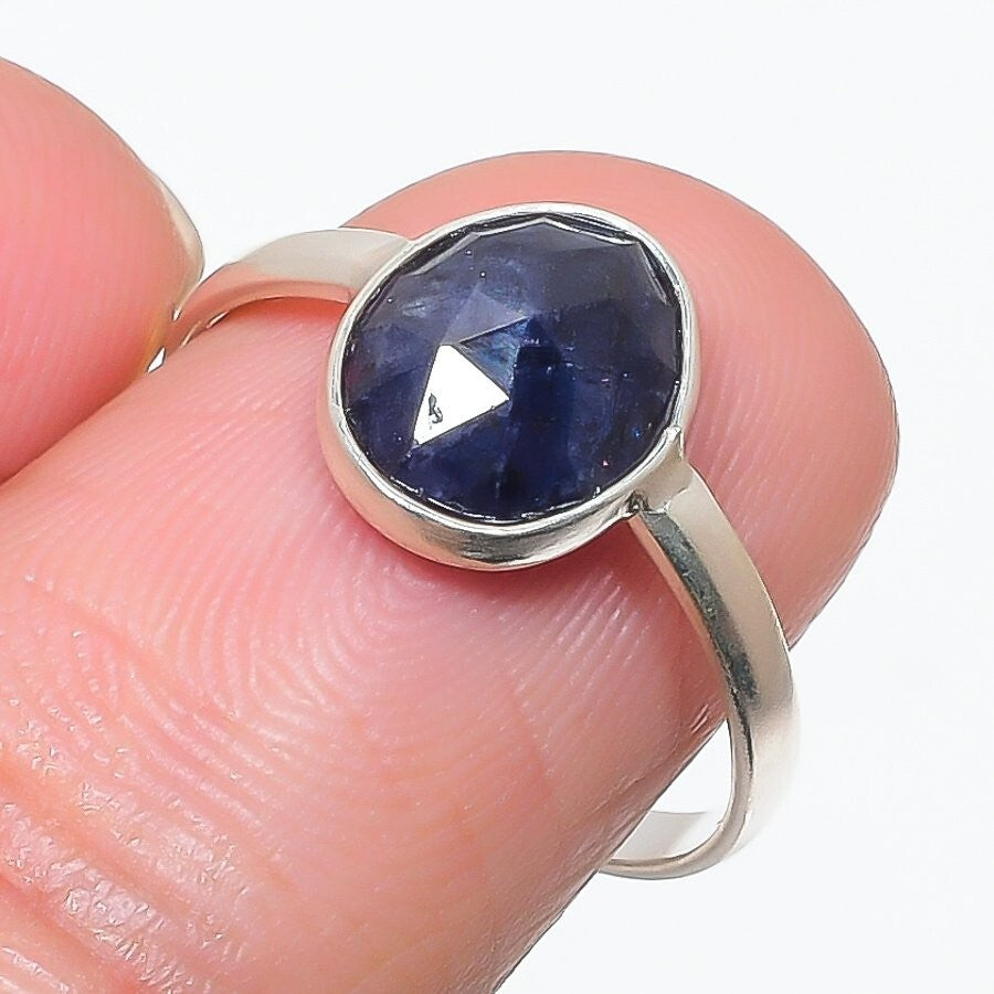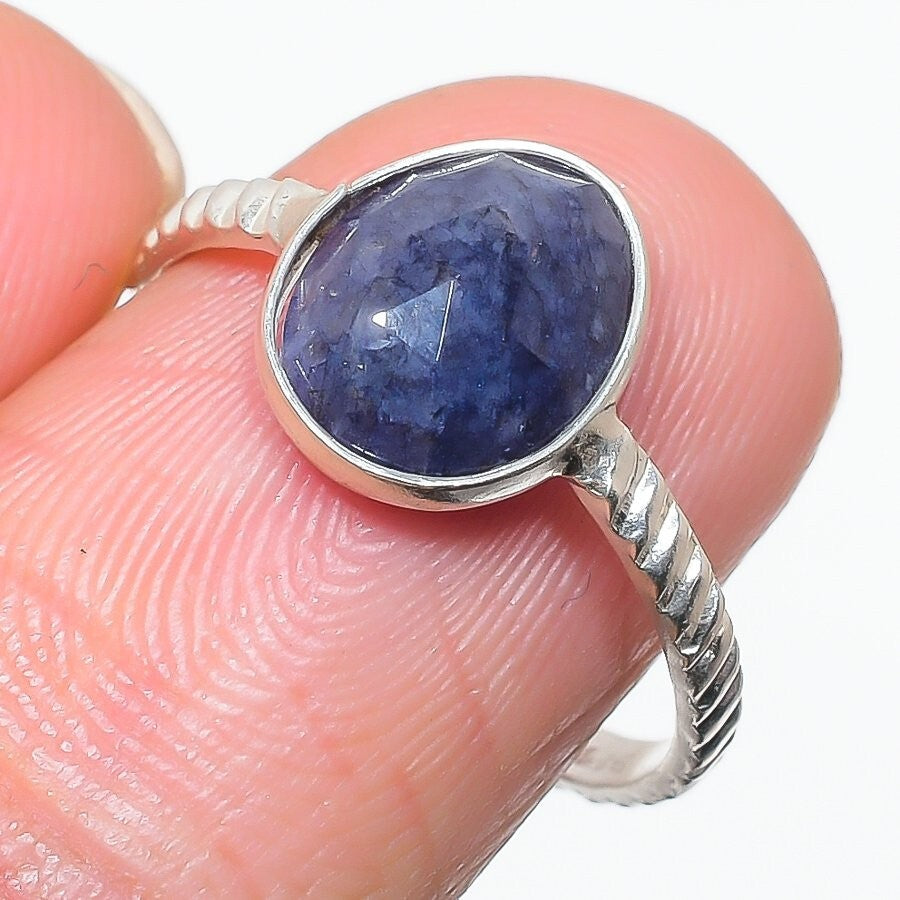Natural Sodalite 925Ā SolidĀ Silver Sister Cluster Third Eye Chakra Ring Size 8.5