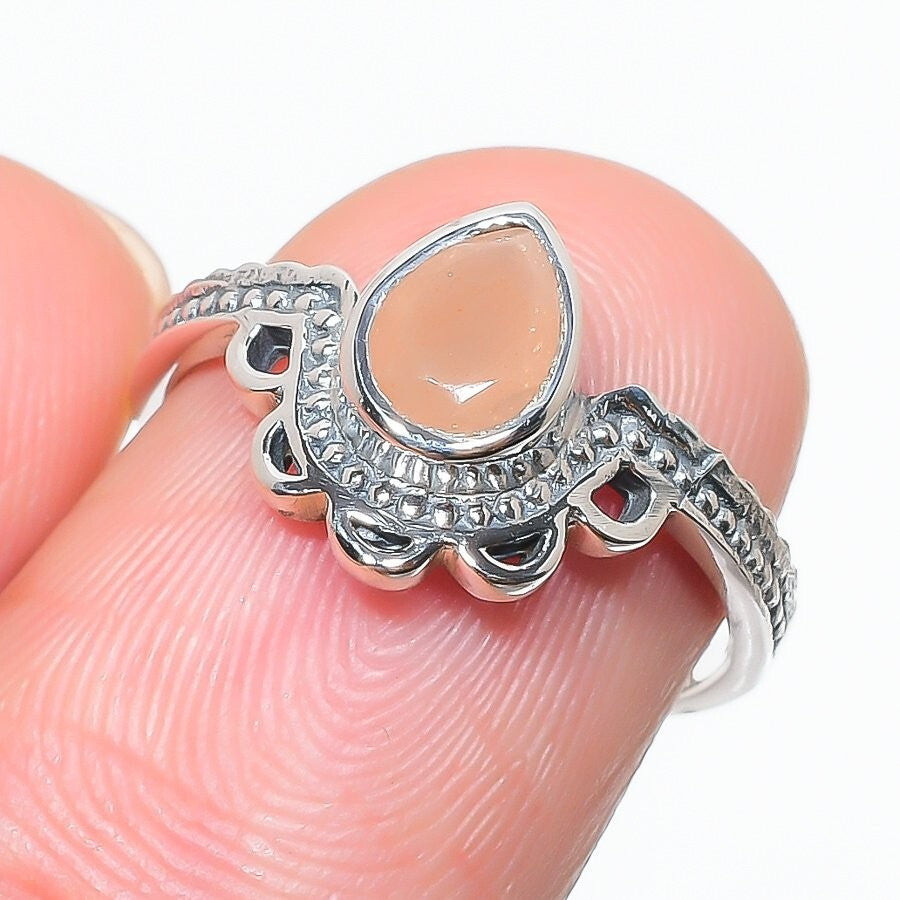 Sunstone Gemstone Solid Silver Birthday Cluster Wife Artisan Wedding Ring Size 7