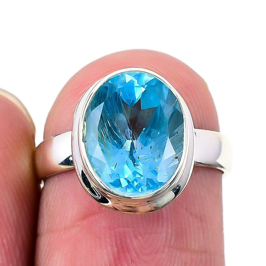 Swiss Blue Topaz Stone Birthday Statement Boho Ring 925 Sterling Silver US 7.5