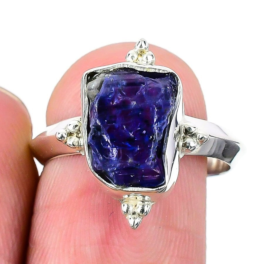 Natural Tanzanite Rough Birthday Wife Statement Ring Solid Sterling Silver US 8