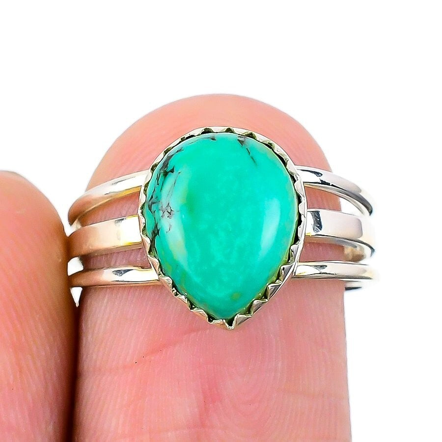 Tibetan Turquoise Gemstone Anniversary Statement Ring Jewelry 925 Silver US 7