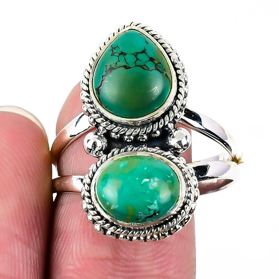 Tibetan Turquoise Gemstone Statement Handmade New Ring 925 Sterling Silver US 11