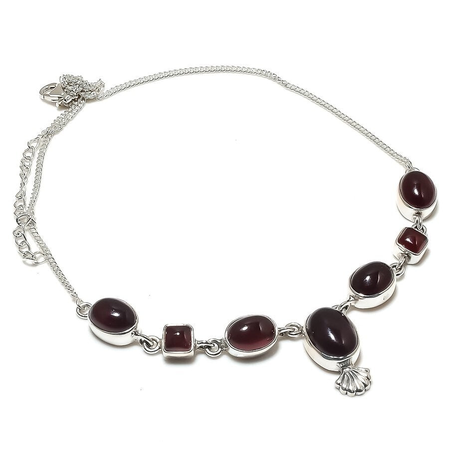 Natural garnet 925 Silver Anniversary Sister Chain Boho January Birth Necklace