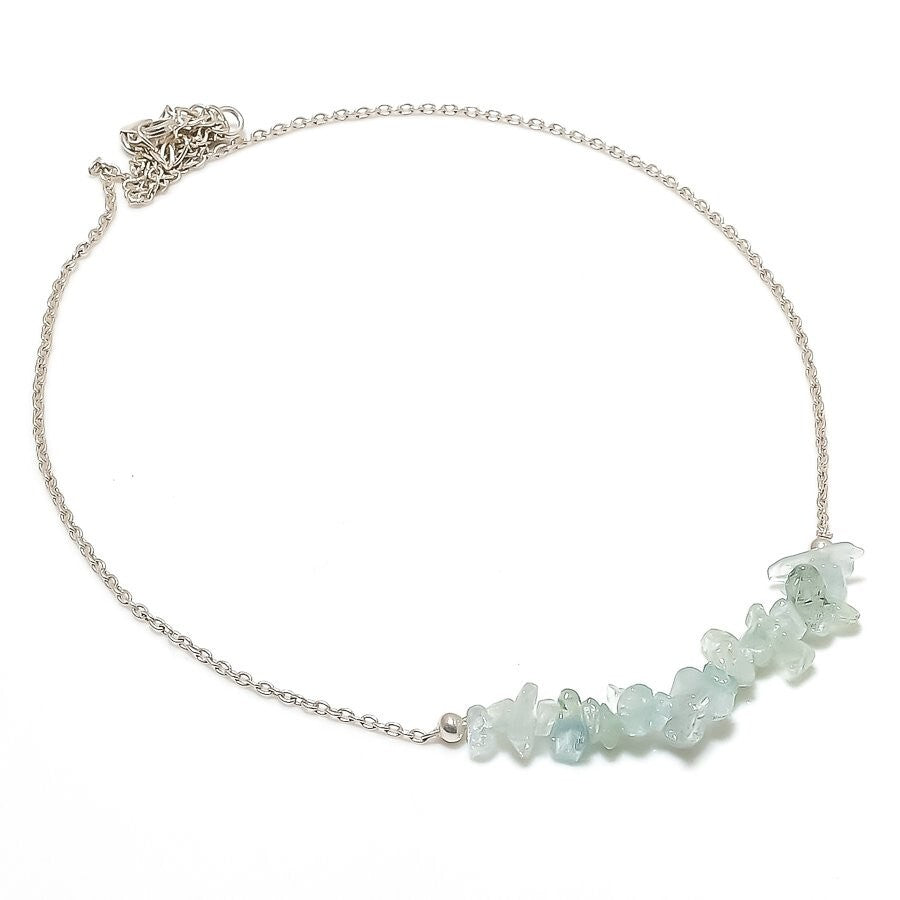 Aquamarine Druzy Gemstone Solid Silver Wife Ethnic Chain Wedding Hook Necklace