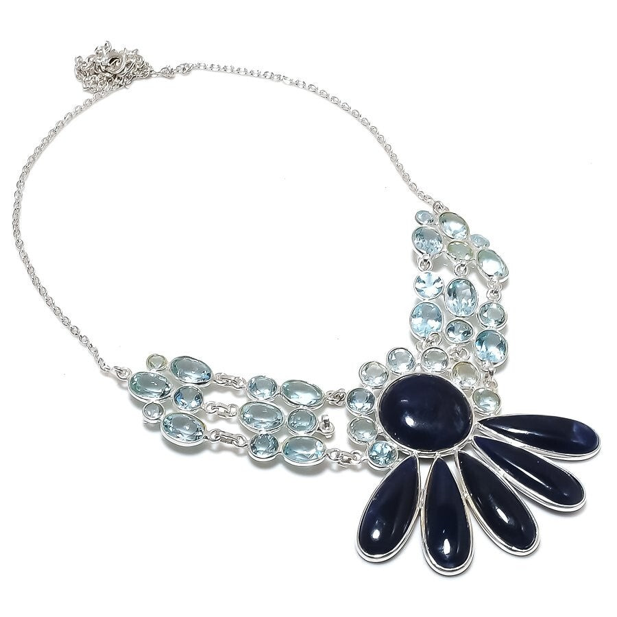 Natural Sodalite 925Ā SolidĀ Silver Chain Third Eye Chakra Wife Hook Boho Necklace