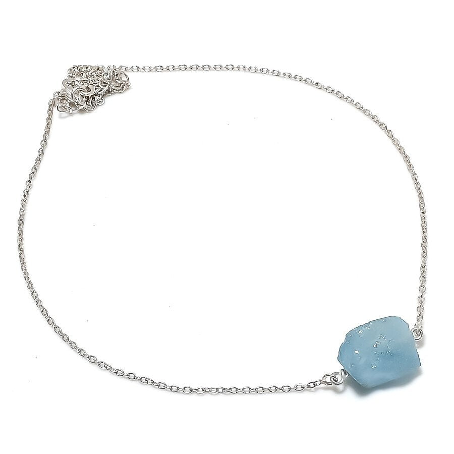 Aquamarine Druzy Stone Solid Silver Mother Handcrafted Chain Necklace Jewelry