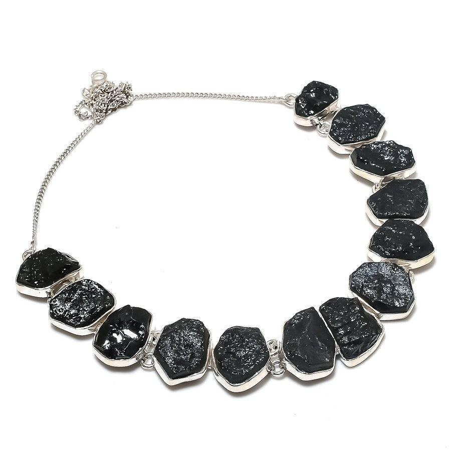 Natural Black Tourmaline 925Ā SolidĀ Silver Hook Chain Boho Anniversary Necklace