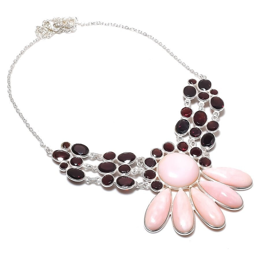 Pink Opal Stone Sterling Silver Unique Mother Trendy Chain Hook Necklace Jewelry