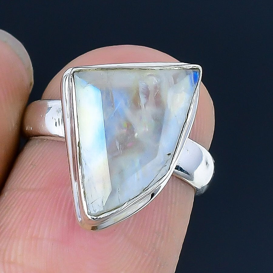 Rainbow Moonstone Gemstone Sterling Silver Statement Wedding Ring Jewelry Size 5