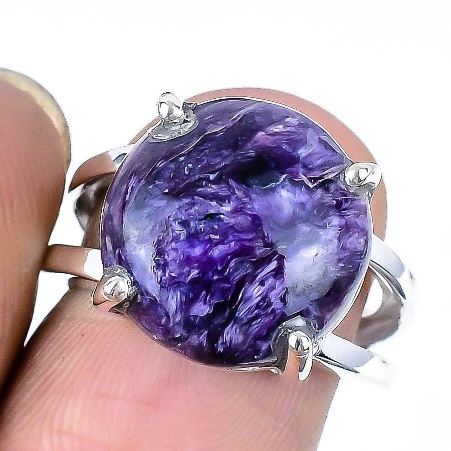 Russian Charoite Stone Anniversary New Statement Ring Size 7 925 Sterling Silver