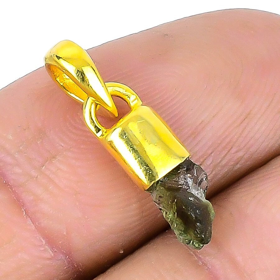 Moldavite Quartz Gold Stone Artisan Unique Wife Pendant Jewelry 925Ā SolidĀ Silver