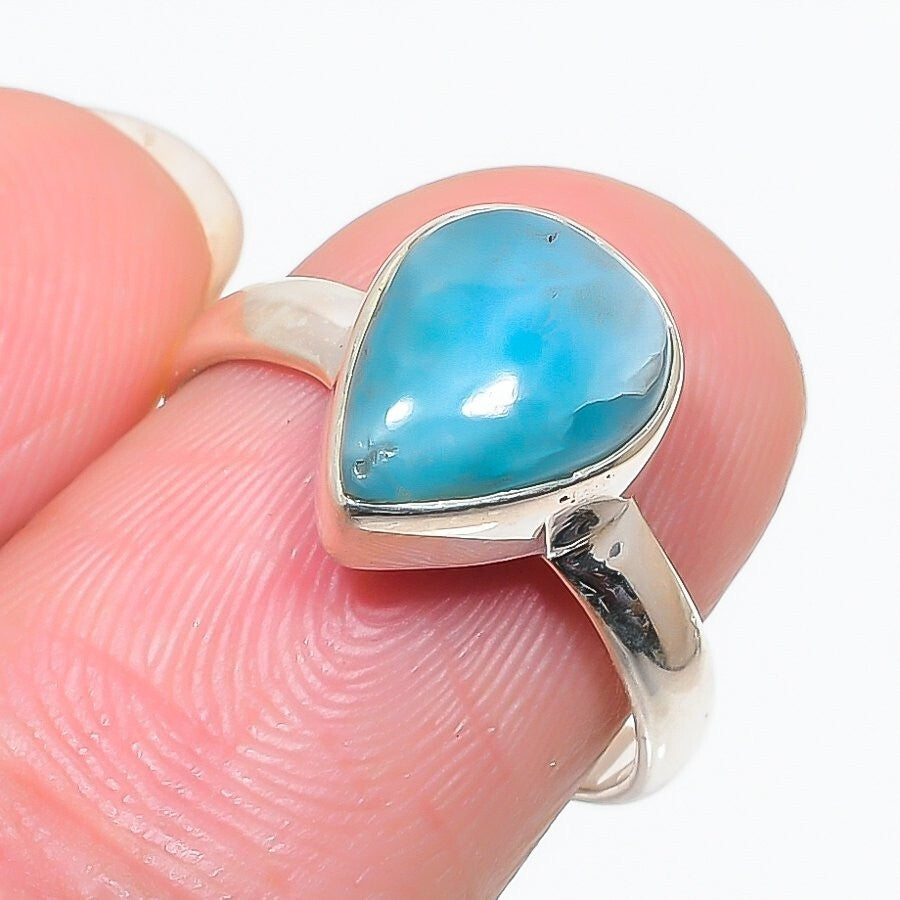 Republic Larimar Gemstone Solid Silver Trendy Cluster Sister New Ring Size 7.5