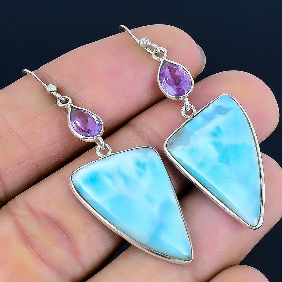 Republic Larimar Stone Solid Silver Hook Trendy Dangle Sister Earrings Jewelry