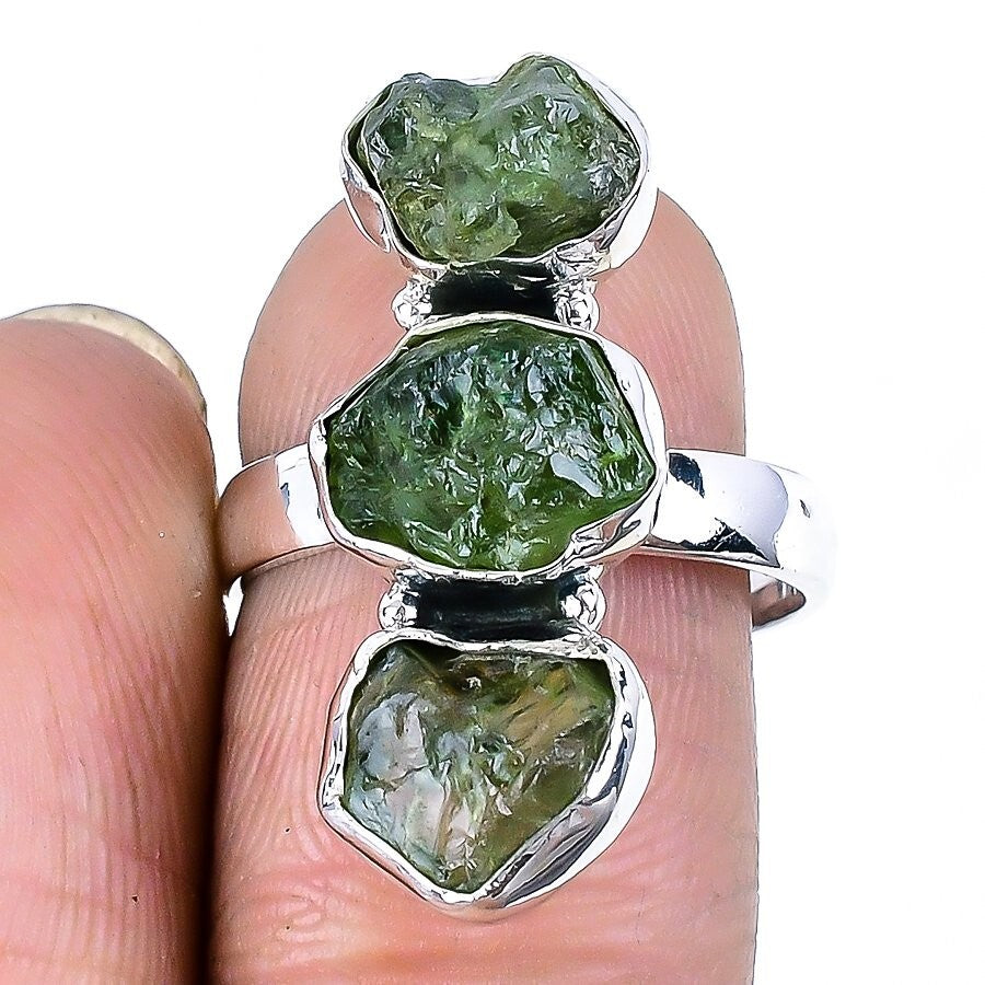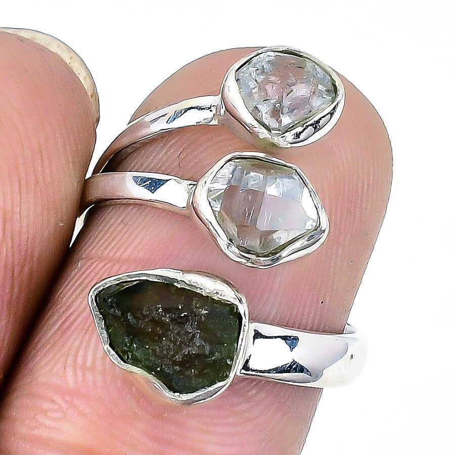 Natural Moldavite Quartz Sterling Silver Trendy Statement Sister Unique New Ring