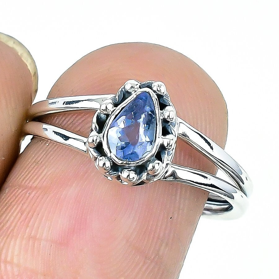 Natural Tanzanite Faceted 925 Sterling Silver Sister Statement Handcrafted Ring