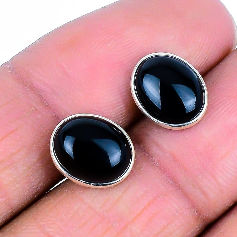 Root Chakra Natural Black Onyx 925Ā SolidĀ Silver Stud Handmade Earrings Jewelry