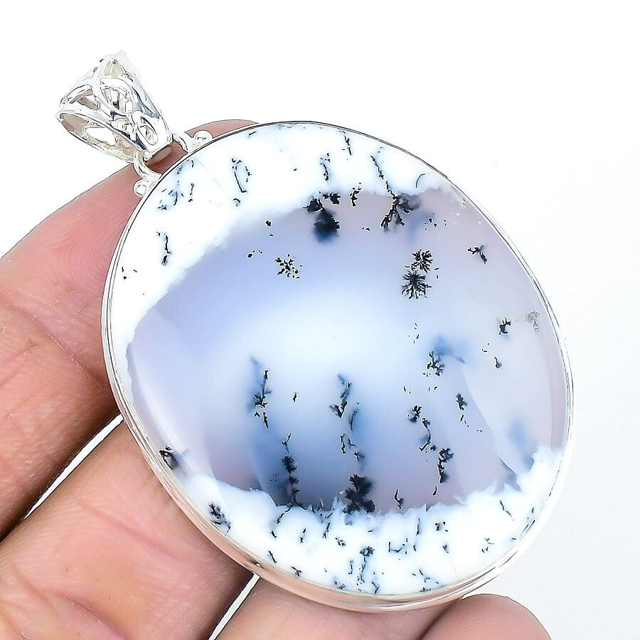 Dendrite Opal Stone Solid Sterling Silver Elegant Engagement Ethnic Boho Pendant