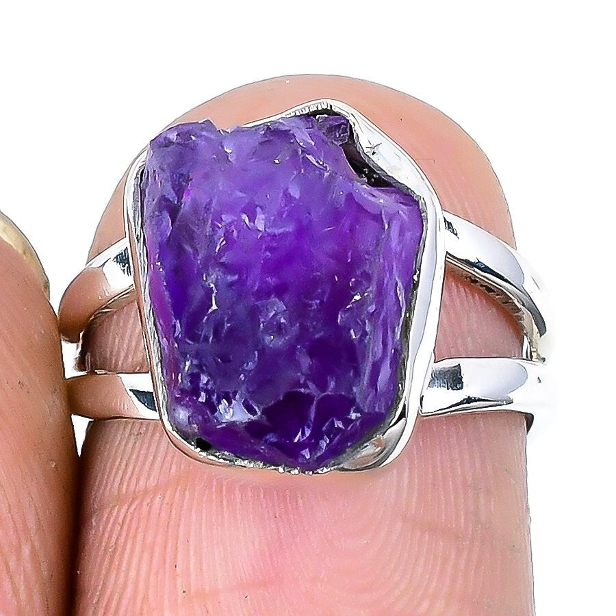 Amethyst Druzy Gemstone 925 Sterling Silver Engagement Art Deco Statement Ring