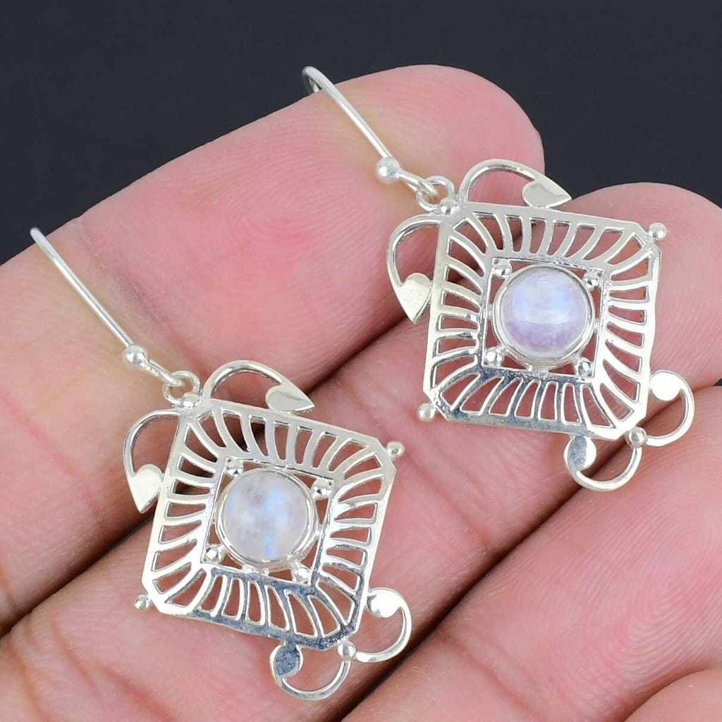 Rainbow Moonstone Stone Drop Dangle Valentines Earrings Jewelry 925 Solid Silver