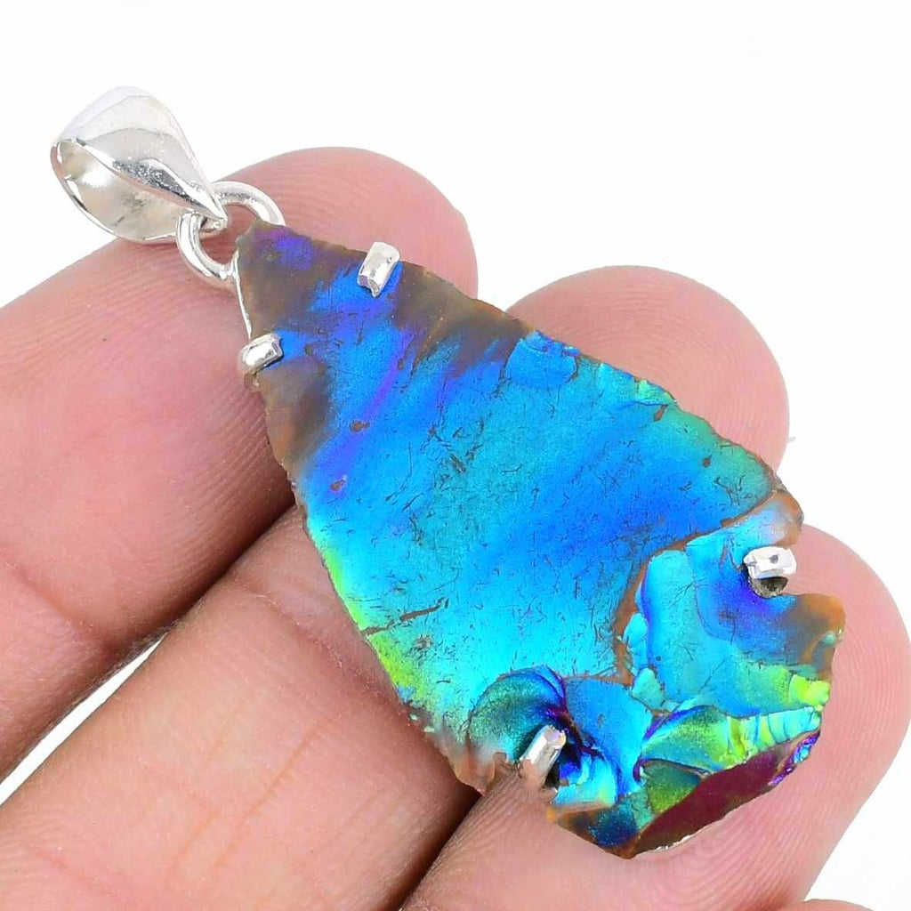 Natural Peacock Titanium Aura 925 Sterling Silver Sister Wedding Pendant Jewelry