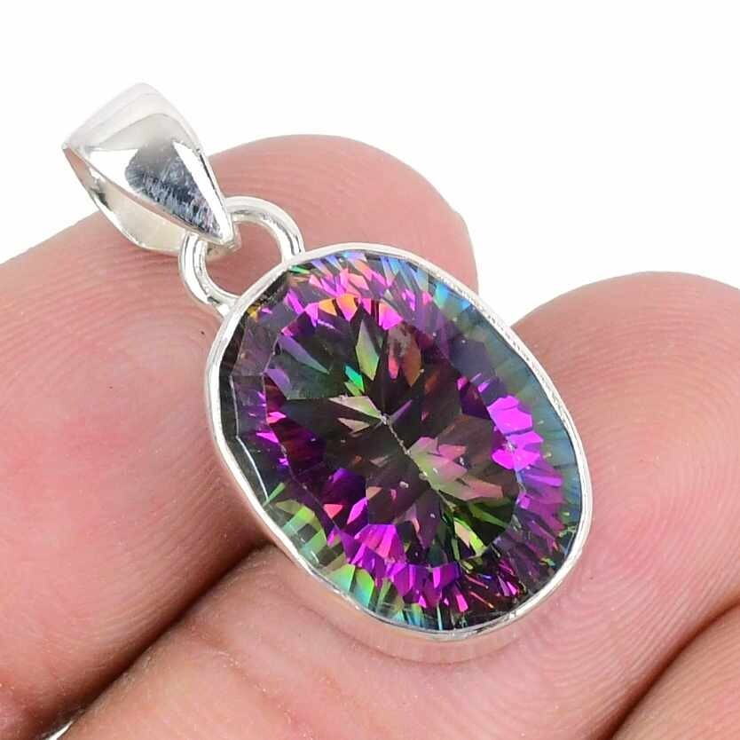 Natural Rainbow Mystic Topaz 925 Sterling Silver Valentines Boho Pendant Jewelry