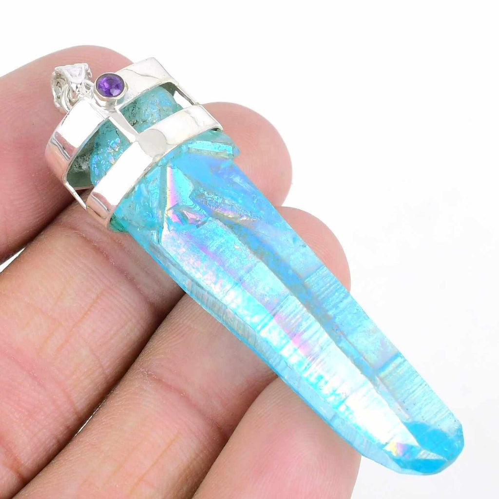Natural Titanium Aura Druzy 925 Silver Ethnic Wedding Birthday Pendant Jewelry