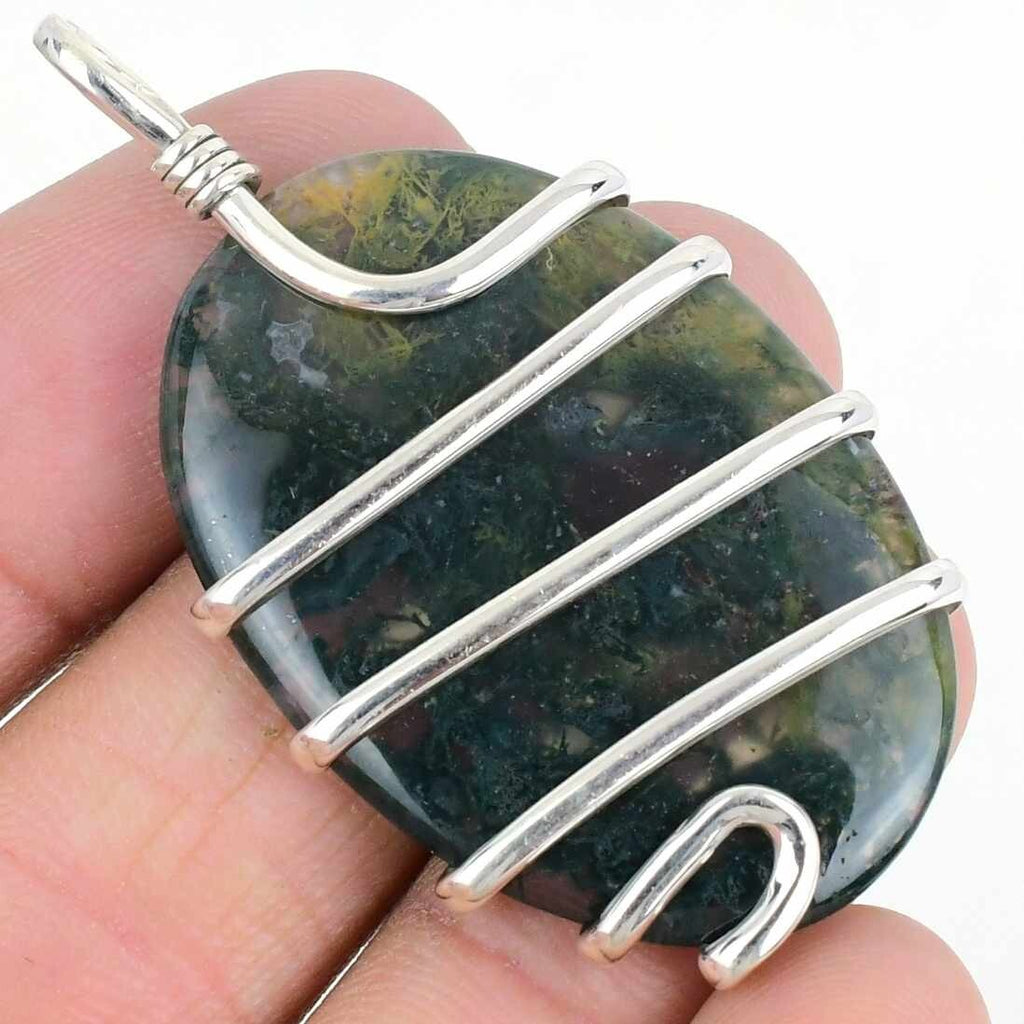Natural Green Moss Agate Birthday Mother Wedding Pendant Jewelry Sterling Silver