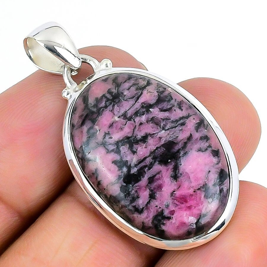 Rhodonite Gemstone Solid Sterling Silver Sister Ethnic Heart Chakra Boho Pendant