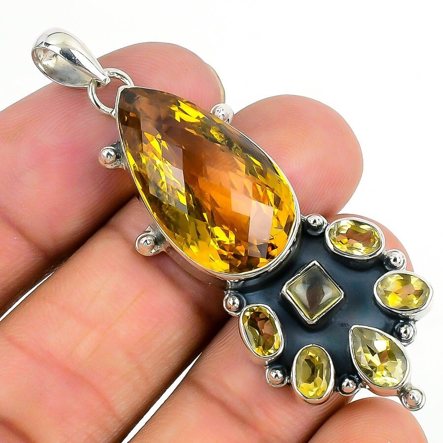Natural Citrine 925 Silver Daughter Elegant Birthday Bezel Valentines Pendant