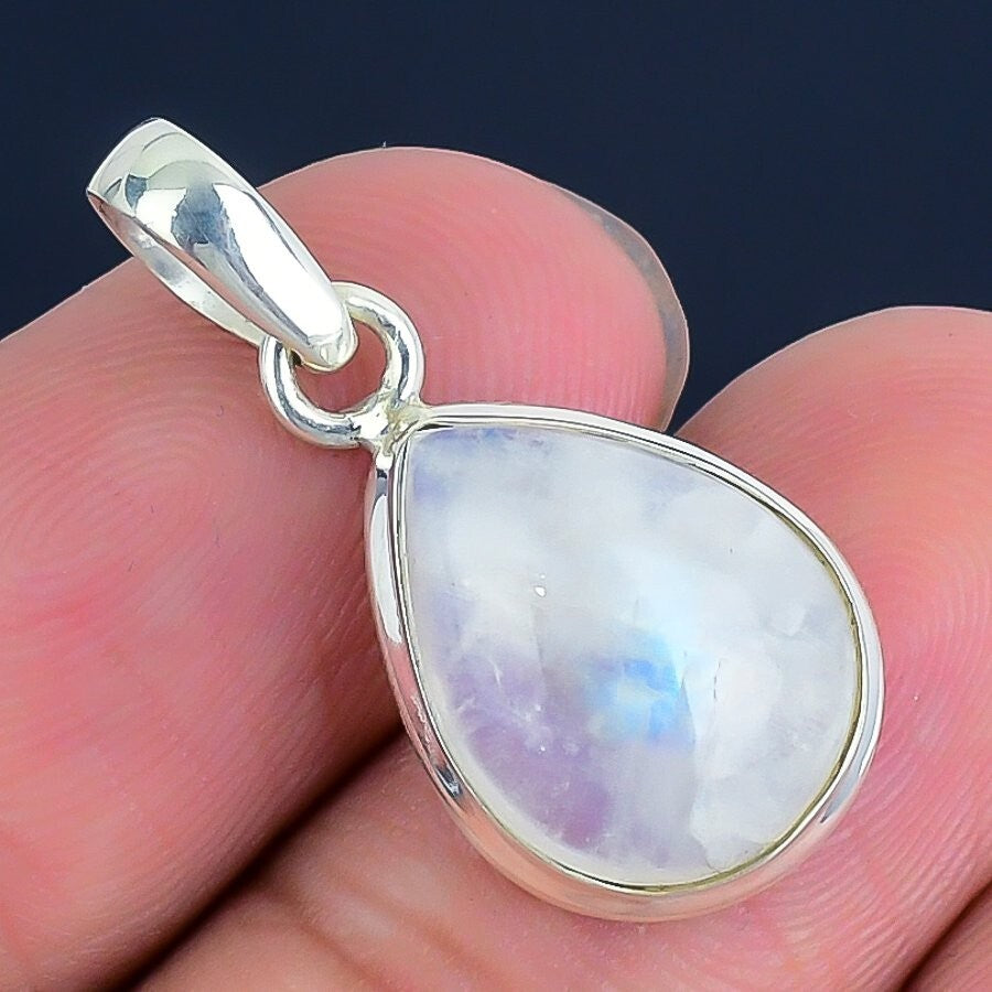Moonstone Gemstone June Birth Bezel Birthday Pendant Jewelry 925 Sterling Silver