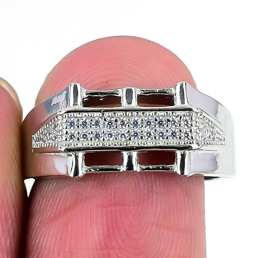 Natural White Topaz 925 Sterling Silver Wife Statement Bezel Ring Jewelry US 7