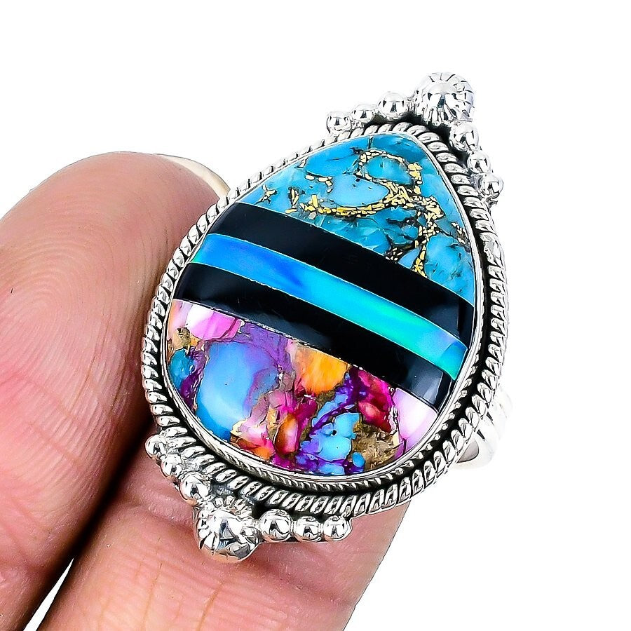 Spiny Oyster Matrix Gemstone Sterling Silver Statement New Ring Jewelry Size 7.5
