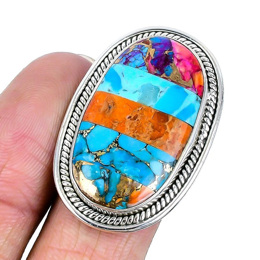 Spiny Oyster Matrix Stone Statement Ring Jewelry Size 9.5 Solid Sterling Silver