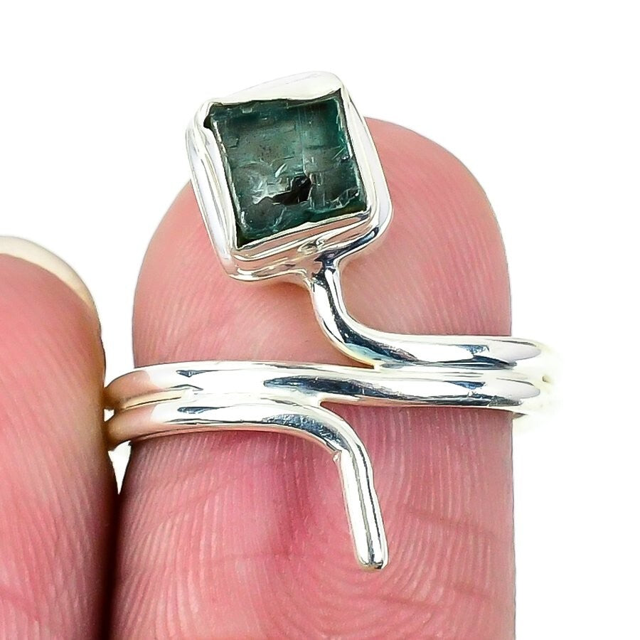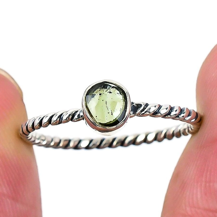 Moldavite Gemstone 925 Silver Statement Ethnic Artisan Wedding Ring Jewelry US 7