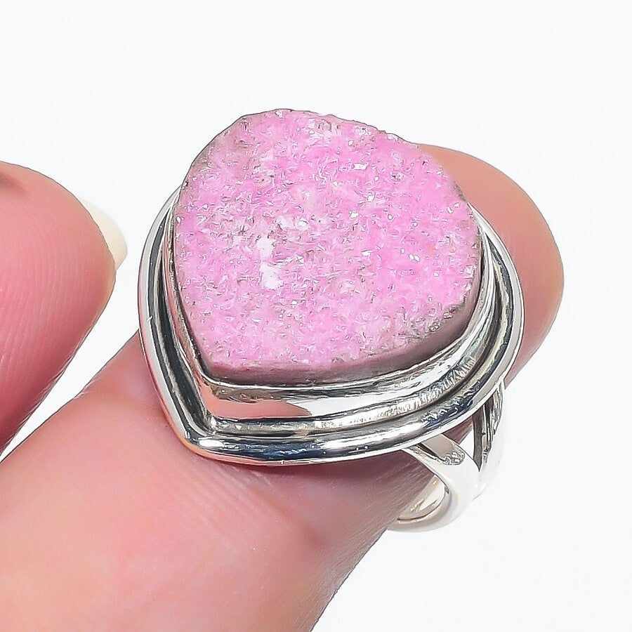 Natural Hemimorphite Druzy 925Ā SolidĀ Silver Statement Daughter Ring Jewelry US 7
