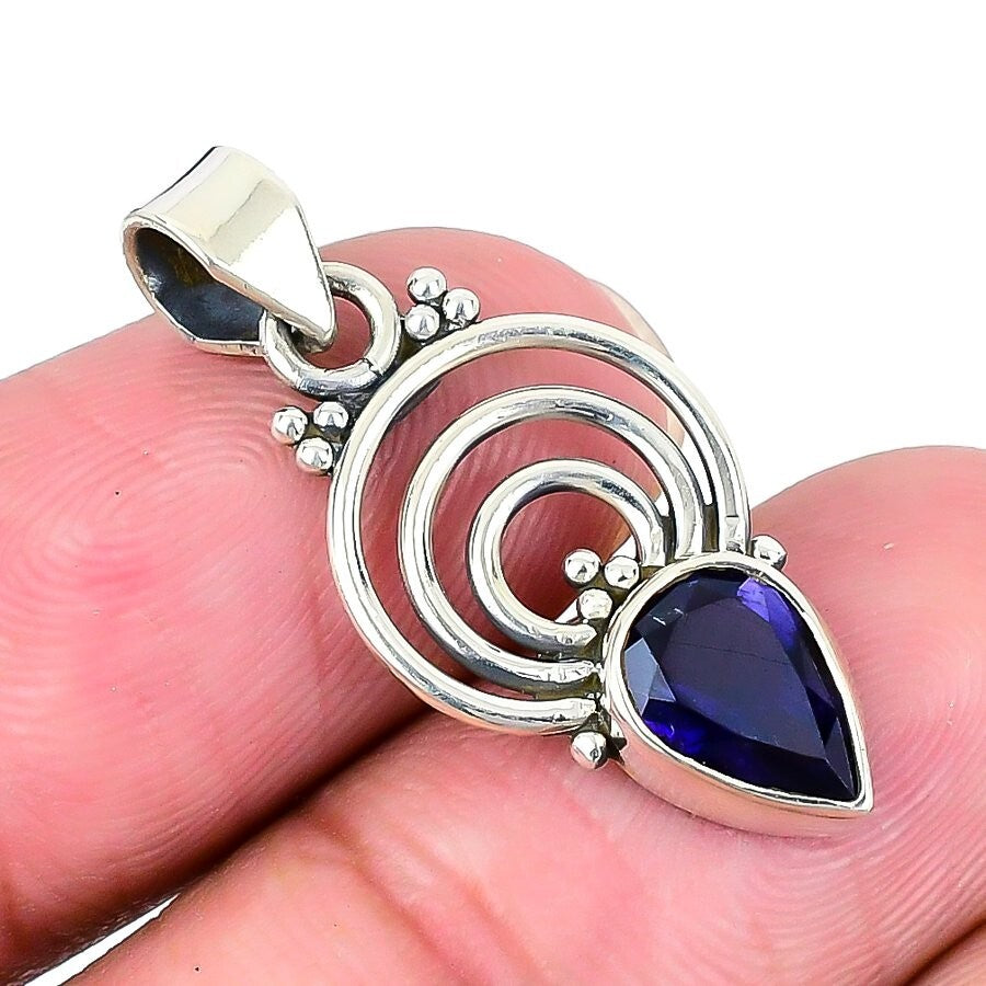 London Blue Topaz Gemstone 925Ā SolidĀ Silver Handmade Birthday Pendant Jewelry