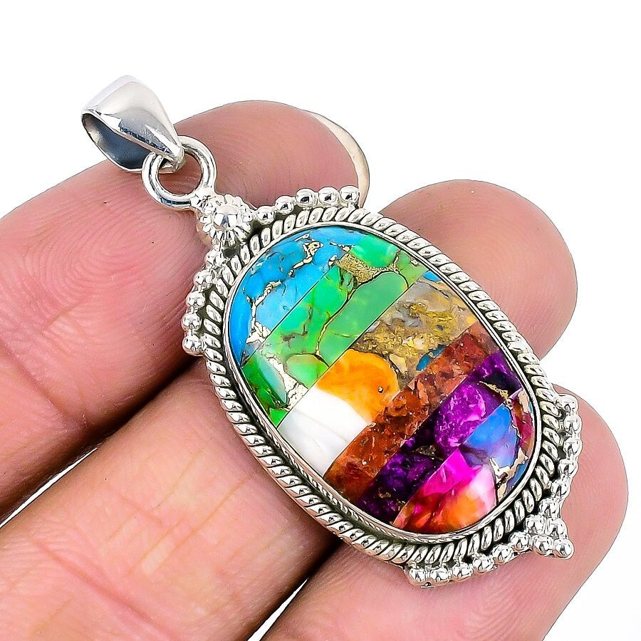 Spiny Oyster Matrix Gemstone Sterling Silver Handcrafted Wedding Pendant Jewelry