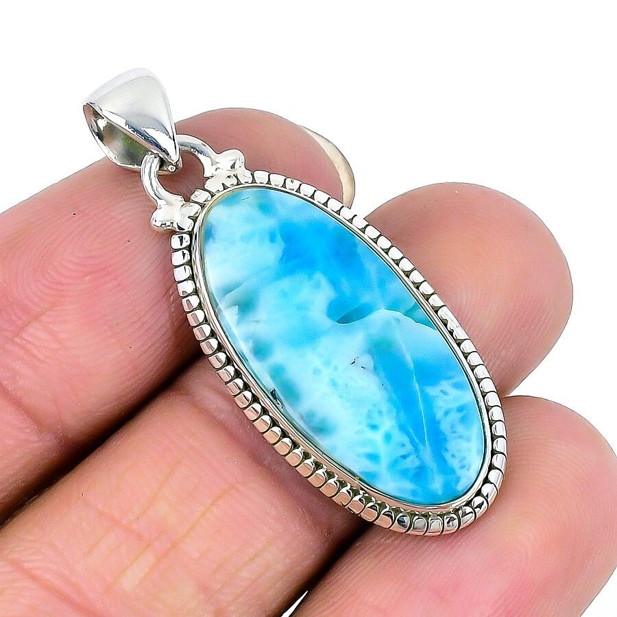 Republic Larimar Stone Solid Silver Ethnic Unique Engagement Handcrafted Pendant