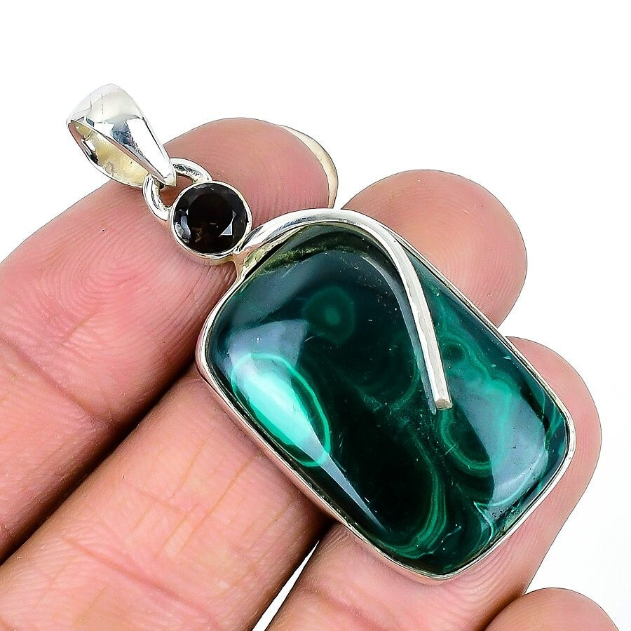 Malachite Gemstone Engagement Sister Boho Pendant Jewelry Solid Sterling Silver