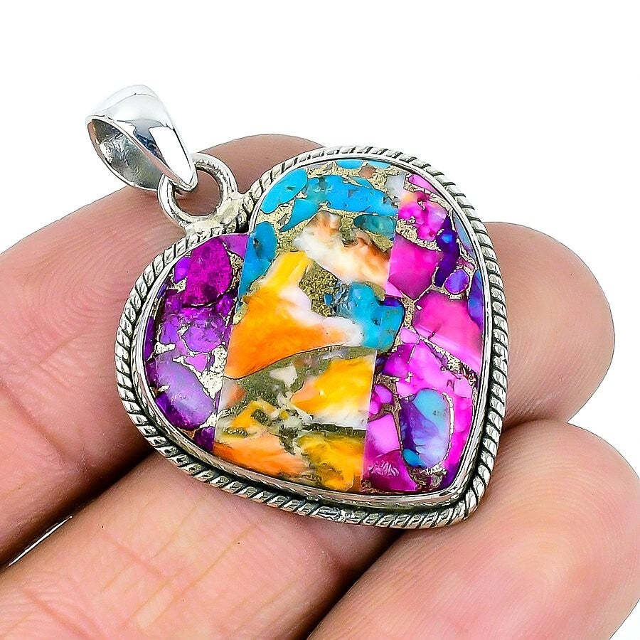 Spiny Oyster Matrix Gemstone Solid Sterling Silver Daughter Boho Pendant Jewelry