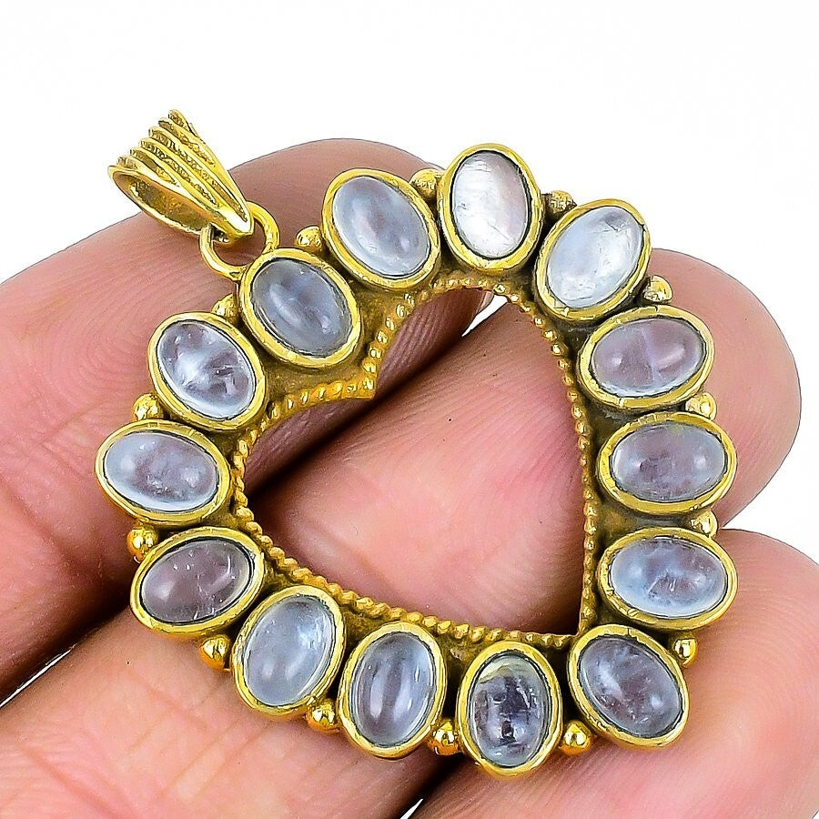 Natural Aquamarine 925Ā SolidĀ Silver Sister Elegant Engagement Pendant Jewelry